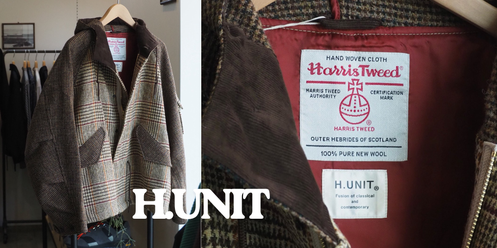 【ハリスツィードを100%使用したジャケット】H.UNIT(エイチユニット)/Harris Tweed switching hooded jacket/ハリスツィード/25aw