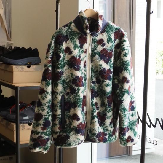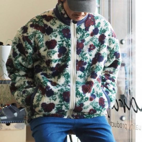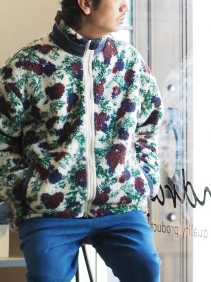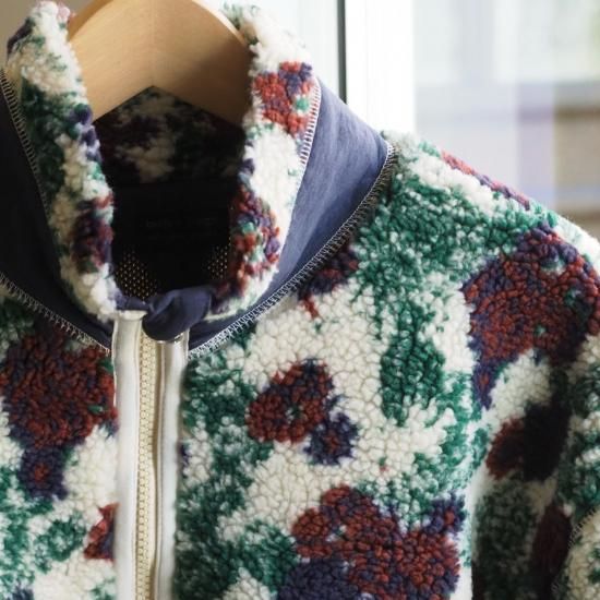 【インパクトある花柄ボアジャケット】modem design(モデムデザイン)/FLOWER BOA ZIP/ボア/フリース/25aw【WHHITE/GRAY】全2色