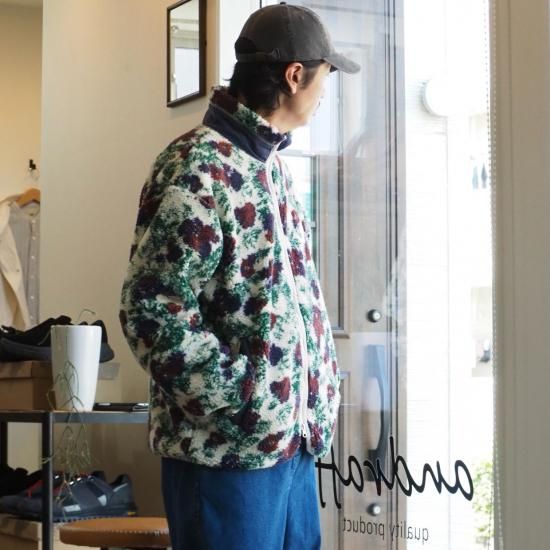 【インパクトある花柄ボアジャケット】modem design(モデムデザイン)/FLOWER BOA ZIP/ボア/フリース/25aw【WHHITE/GRAY】全2色