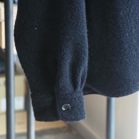 日本に3台しかない希少な丸編み機を使いゆっくりと空気を含んだようにふっくらとしたウールパイルの着心地は秀逸。