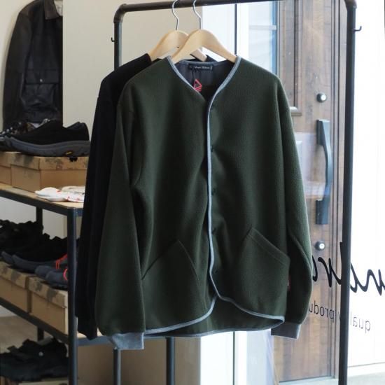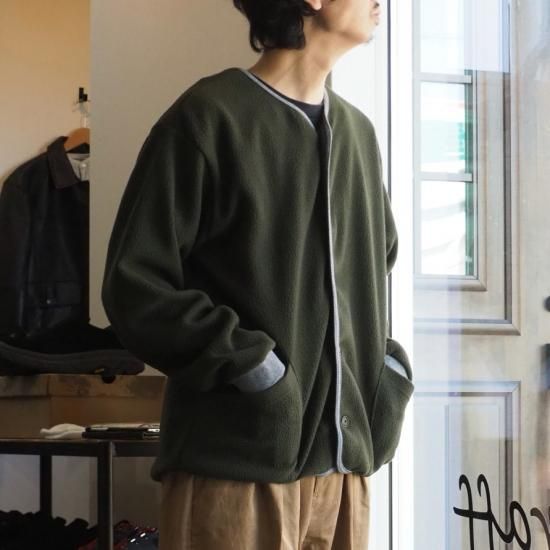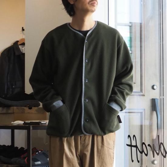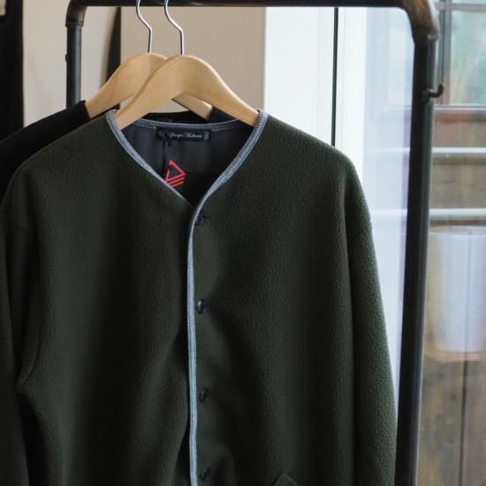【通気性と保温性、軽量性を兼ね備えたポーラテック】Audience/POLARTEC Thermal Proボア ノーカラーARMYジャケット/25aw/日本製【OLIVE/BLACK】全2色