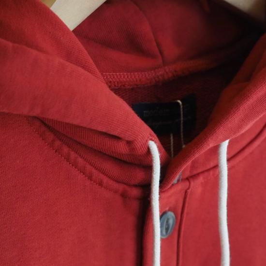 【ハーフボタンのクラックプリントパーカー】modem design(モデムデザイン)/HARF BUTTON HOODED /パーカー/クラックプリント【GRAY/RED】全2色