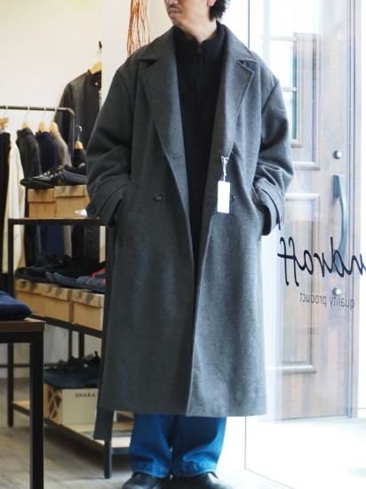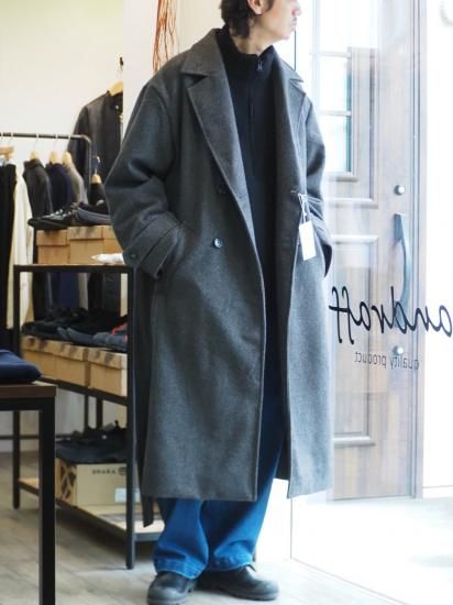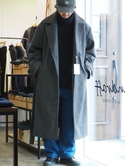 ダブル仕様の前開きとウエストベルトにより締めて着ればクラシックに、開けて着ればリラックス感のある着こなしが可能です。