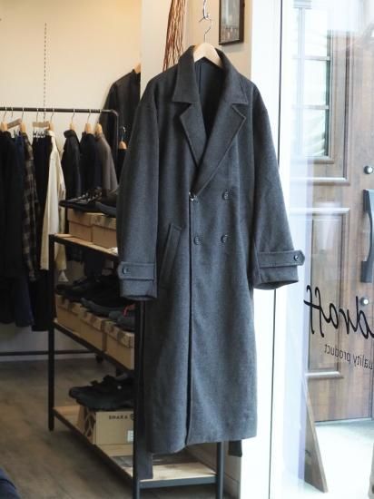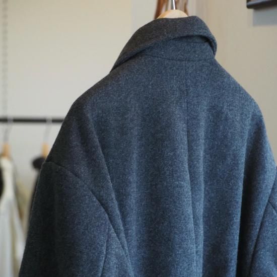 ウールのような風合いを持たせたロングコート。